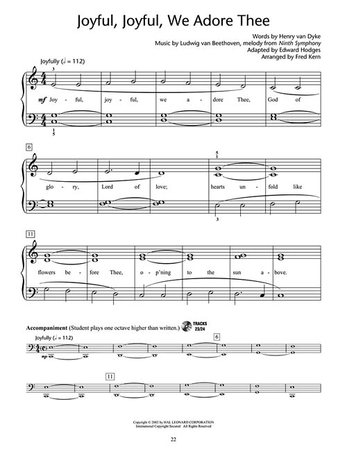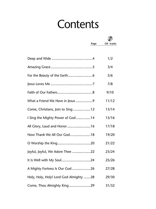 Exciting supplementary material featuring beautiful arrangements of 16 sacred favorites: All Glory, Laud and Honor • Come, Thou Almighty King • For the Beauty of the Earth • Holy, Holy, Holy! • It Is Well with My Soul • Joyful, Joyful, We Adore Thee • A Mighty Fortress Is Our God • What a Friend We Have in Jesus • and more. The CD features orchestrated accompaniments at practice and performance tempos. It is playable on any CD player, and also enhanced so Mac and PC users can access MIDI files for each song.