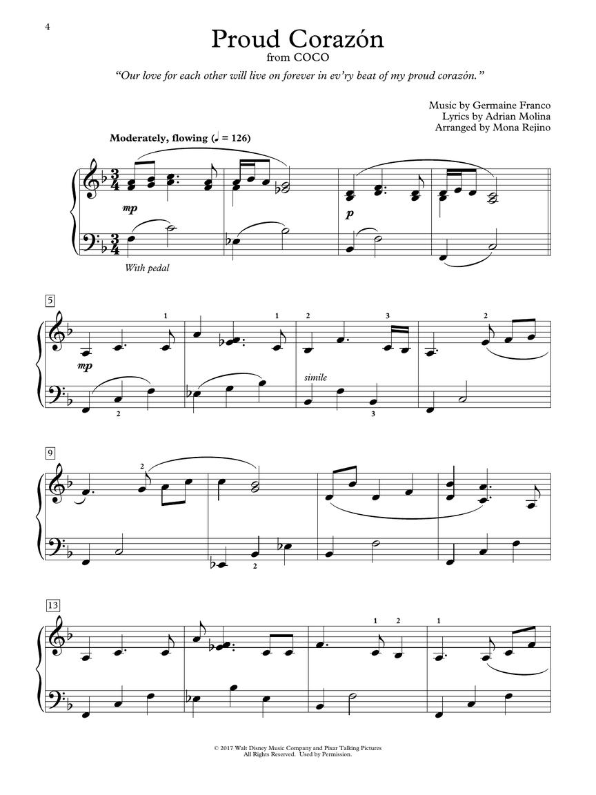 9 great piano solo arrangements of songs from your favorite Disney movies! Excellent for recitals, lessons, or just for fun! From COCO: Proud Corazon • Remember Me (Lullaby) • Un Poco Loco • From ENCANTO: Dos Oruguitas • Surface Pressure • We Don't Talk About Bruno • From FROZEN II: All Is Found • Into the Unknown • Show Yourself.