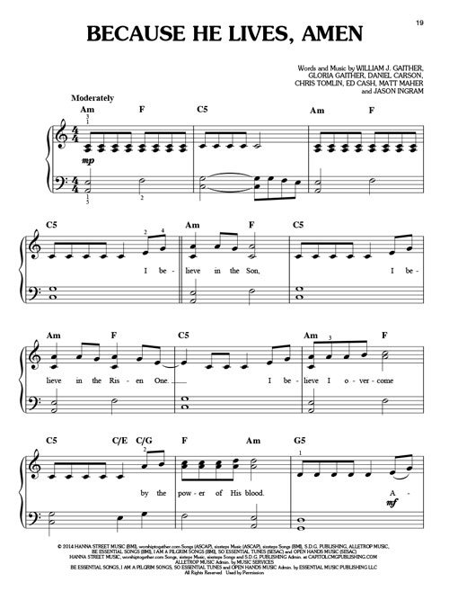 A great collection of 40 worship favorites arranged at an easier level including: Because He Lives, Amen • Cornerstone • Forever (We Sing Hallelujah) • Great Are You Lord • How Great Is Our God • Lord, I Need You • Mighty to Save • Oceans (Where Feet May Fail) • Our God • 10,000 Reasons (Bless the Lord) • This Is Amazing Grace • We Believe • and more.