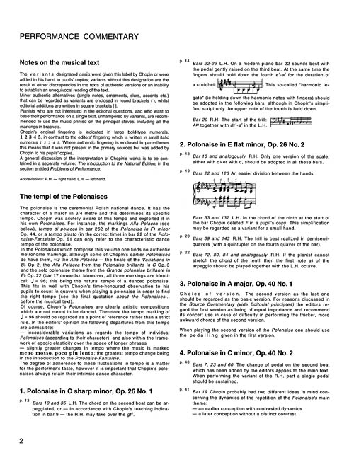 Contains Polonaises from Op. 26, Op. 40 (including two versions of Op. 40, No. 1), Op. 44, Op. 53, and Op. 61. The Polonaises are inspired by Polish traditional dance, and they echo the Polish struggle for freedom. See also 00132302 for the Polonaises published posthumously.