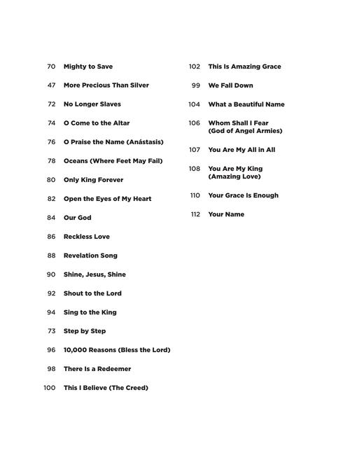60 arranjos super fáceis para piano com melodias simples à direita, nomes de letras em cada nota, diagramas básicos de acordes à esquerda e letras! As músicas incluem: Blessed Be Your Name · Cornerstone · How Great Is Our God · I Could Sing of Your Love Forever · In Christ Alone · The Lion and the Lamb · Mighty to Save · Reckless Love · 10,000 Reasons (Bless the Lord) · What a Beautiful Name · Your Grace Is Enough · e outras.