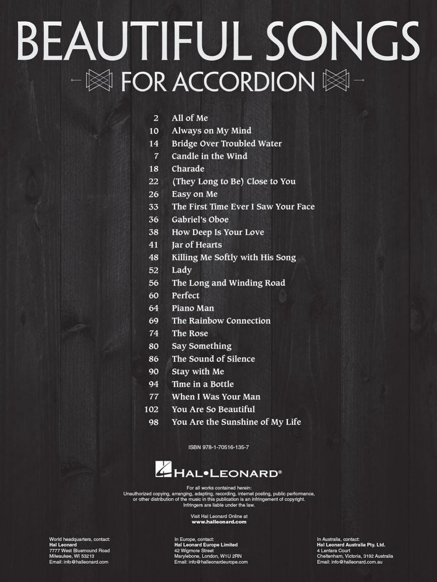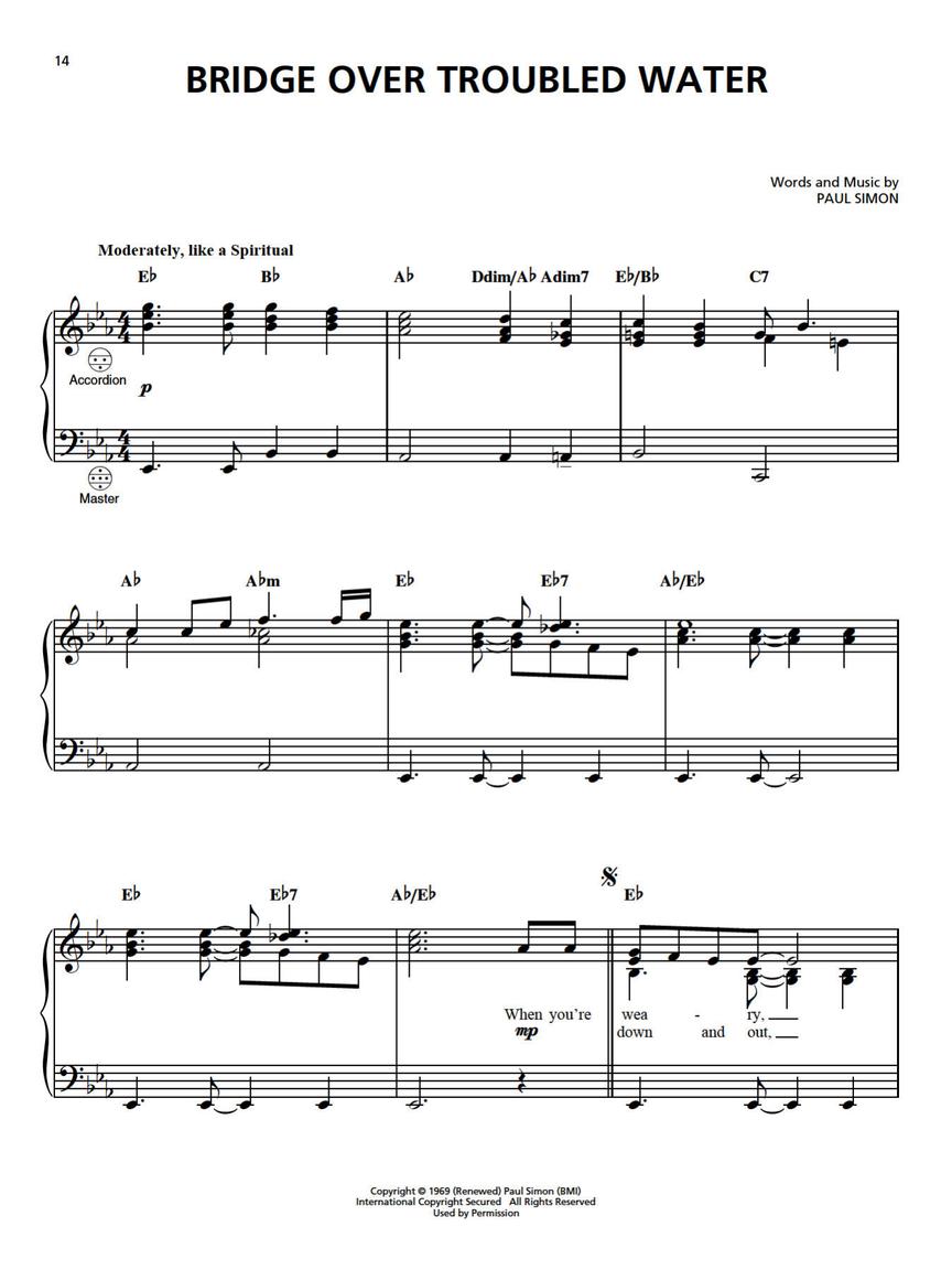 25 canções lindas arranjadas para acoredon: Bridge over Troubled Water • Candle in the Wind • (They Long to Be) Close to You • Easy on Me • How Deep Is Your Love • The Long and Winding Road • Perfect • Piano Man • Say Something • You Are the Sunshine of My Life • e outras!