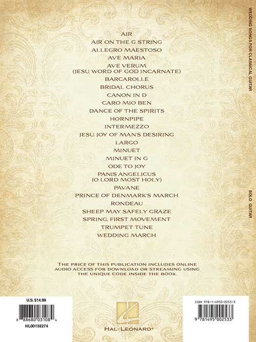 25 wedding favorites, including: Air on the G String • Ave Maria • Bridal Chorus • Canon in D • Jesu, Joy of Man's Desiring • Ode to Joy • Prince of Denmark's March • Wedding March • and more. Book includes access code for online audio samples of each work.