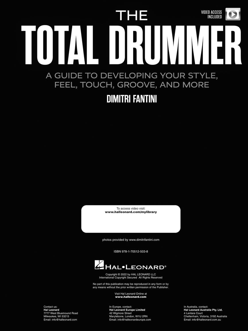 The Total Drummer is put together for any drummer who is looking to take their playing to the next level, offering a complete package designed to help you achieve your musicianship goals. Professional drummer, producer, and educator Dimitri Fantini guides you through exercises, drills, and routines that are guaranteed to improve your playing!