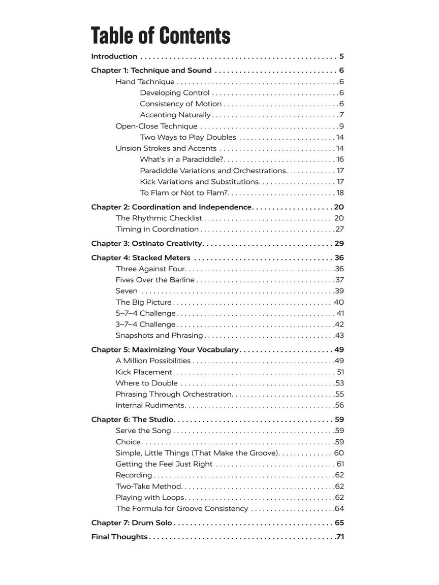 Lessons include: rudiments; developing advanced hand and feet techniques; coordinating independence; stacking meters; maximizing vocabulary; working in the studio; over an hour of video performances and instruction; and more!
