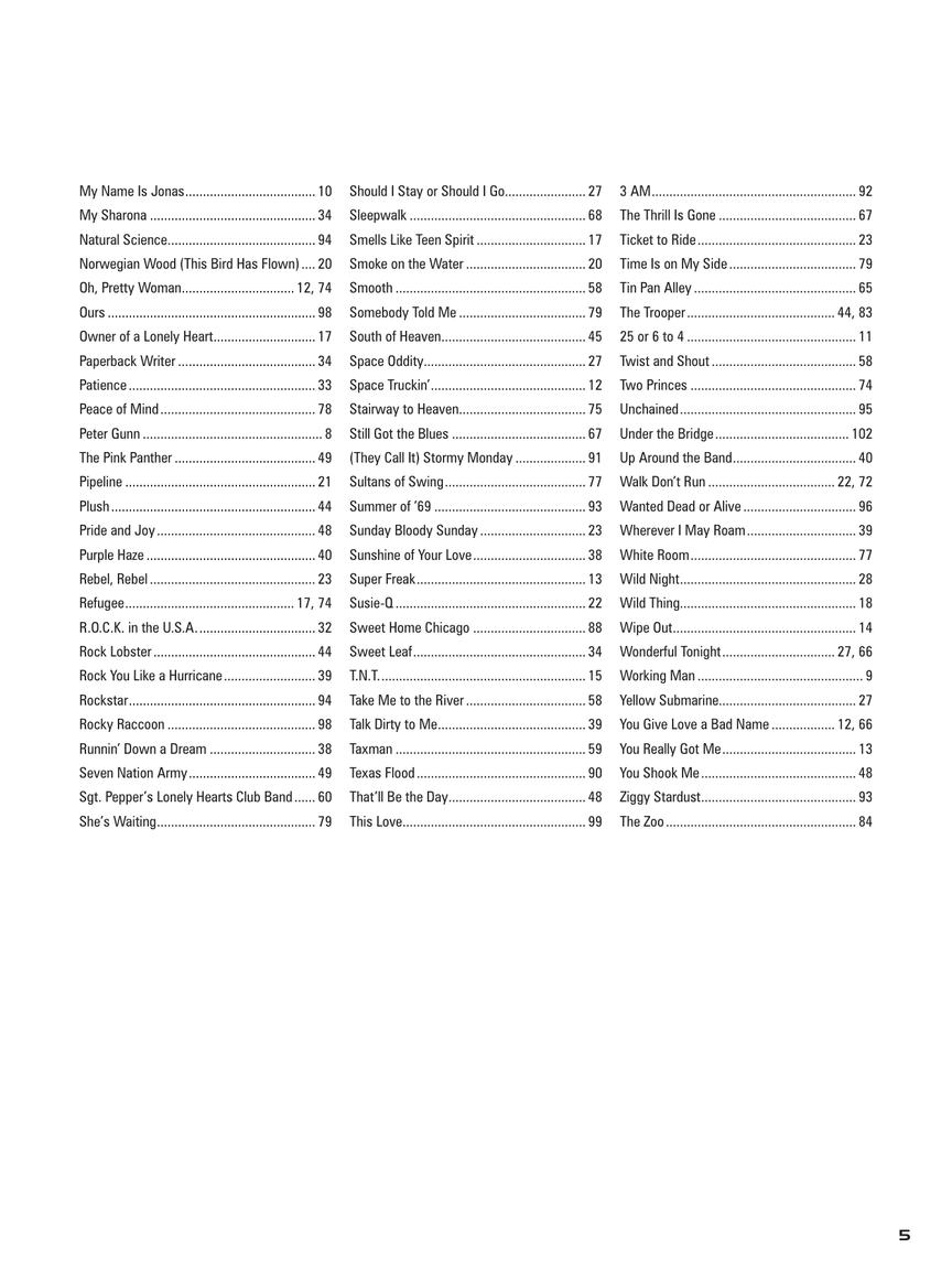 Get started quickly and easily, and with songs you want to play! This method introduces notes with riffs like “Crazy Train” and “Smoke on the Water,” power chords with classics by AC/DC and the Who, chord-strumming with songs by Neil Young and Nirvana, and much more. The method's unique, well-paced, and logical teaching sequence will get students playing more easily than ever before, and music from popular artists like the Eagles, Van Halen, and Green Day will keep them playing and having fun.