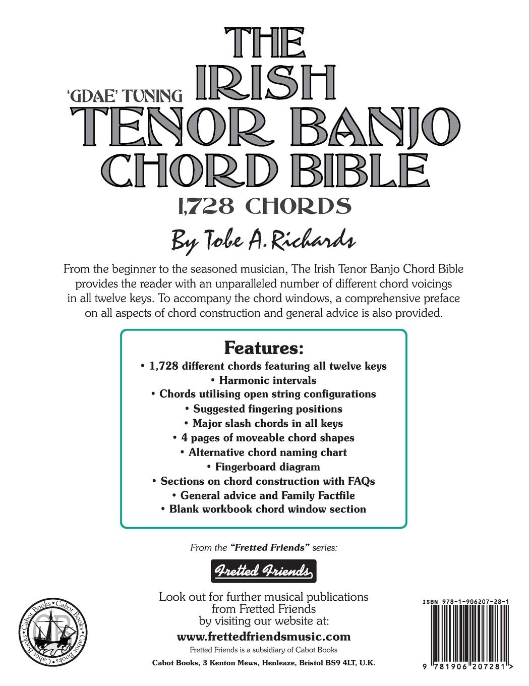 The Irish Tenor Banjo Chord Bible, with its 1,728 chords offers a complete solution for both beginner and experienced professional musician alike. The layout is uncomplicated and follows a logical musical progression from standard major chords up to the more esoteric thirteenths used by many jazz players. To accompany the 1,728 chords, a further 576 possible moveable chord configurations are included, together with a useful range of slash chords, reflecting the popularity of this type of chord in many of today's artist and compilation topline songbooks. This highly comprehensive guide provides the musician with no fewer than 68 different types of chord in all twelve keys, making it the definitive publication for the Irish tenor banjo. Whether you play folk, rock, pop, jazz or any other type of popular music, The Irish Tenor Banjo Chord Bible makes the ideal reference source for all occasions. Standard Chords covered in The Irish Tenor Banjo Chord Bible (using the key of C as an example): C, Cm, C7, Cm7, C5, C6, Cm6, Cmaj7, Cdim, Cdim7, C-5, C+, Csus2, Csus4, C7sus4, Cm7-5, Cadd9, Cmadd9, C6add9, Cm6add9, C7-5, C7+5, C7-9, C7+9, Cm(maj7), Cmaj7-5, Cmaj7+5, C9, Cm9, Cmaj9, C11, C13. Advanced Chords covered in The Irish Tenor Banjo Chord Bible (using the key of C as an example): C4, Cadd11, Csus4add9, Cm-6, C7sus2, C7-5-9, C7-5+9, C7+5-9, C7+5+9, C7add11, C7add13, C7+11, Cm7-5-9, Cm7-9, Cm7add11, Cmaj7+11, C9sus4, C9-5, C9+5, C9+11, Cm9-5, Cm(maj9), Cmaj9-5, Cmaj9+5, Cmaj9+11, Cmaj9add6, C11-9, Cm11, Cmaj11, C13sus4, C13-5-9, C13-9, C13+9, C13+11, Cm13, Cmaj13. Major Slash Chords covered in The Irish Tenor Banjo Chord Bible (using the key of C as an example): C/C, C/Db, C/D, C/Eb, C/E, C/F, C/F#, C/G, C/Ab, C/A, C/Bb, C/B. Beside the many pages of chord boxes or windows, the book features useful sections on tuning, chord construction, fingerboard layout, FAQs, alternative chord naming, fingering, slash chords, harmonic intervals, chord window blanks for transcribing your own favorite chord sequences etc. The aim of this guide is to provide the musician with the flexibility only really offered to guitar and keyboard players in the past. Now, with the help of The The Irish Tenor Banjo Chord Bible, musicians will be able to pick up any songbook and instantly have access to even the most complex and advanced chords.