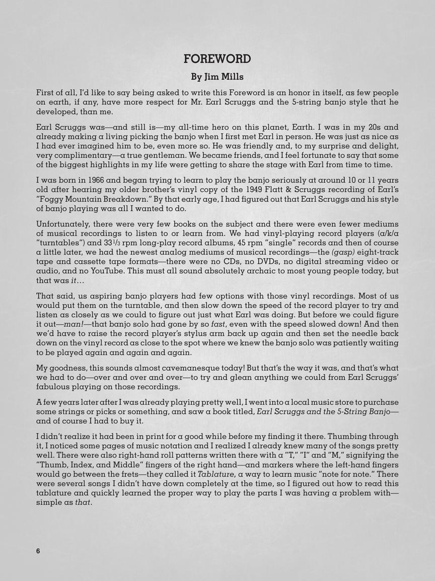 This collection contains tab for Earl's banjo breaks, intros and tags, plus complete banjo instrumental transcriptions for over 80 tunes spanning his recording career. It also includes recording references and tuning and capo info for each piece. The presentation of the songs follows the format in the world's best-selling banjo method, Earl Scruggs and the 5-String Banjo.