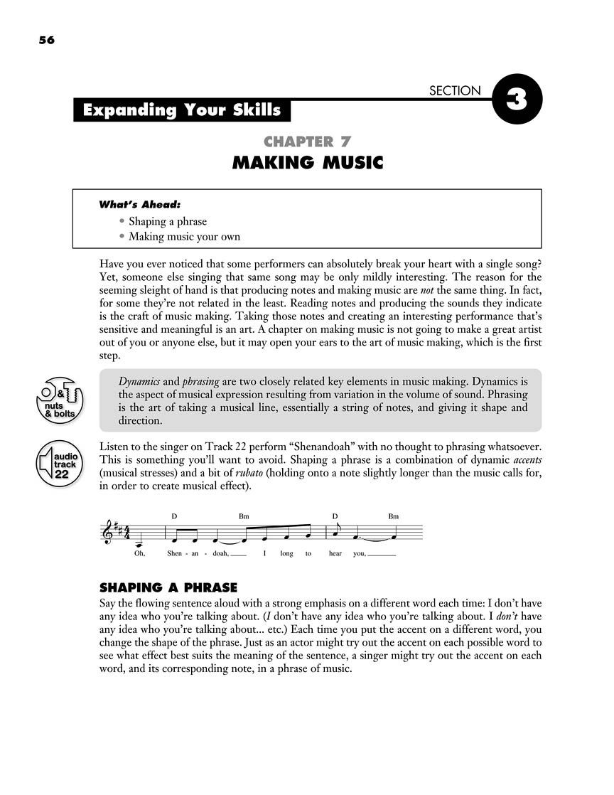 Have you struggled through tedious lessons and boring instruction books in your desire to learn to sing? If you wish there were a fun and engaging way to motivate you in your singing quest, then this is it – All About Singing is for you! Whether it's learning to read music, preparing an audition, singing in a choir, or all of the above, this guide will help you to finally start singing your favorite songs in many different styles. Plus you'll learn interesting tidbits on vocal health, working with a microphone, conquering stage fright, and other fun stuff about singing. This fun-filled, easy-to-use guide includes: an introduction to how the voice works; basic music-reading instruction; background on various styles of music, including many favorite songs; performance tips & tricks; famous singers & suggested listening; and more!