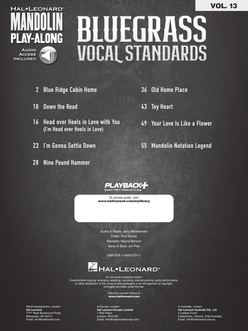 The Mandolin Play-Along Series will help you play your favorite songs quickly and easily. Just follow the written music, listen to the audio to hear how the mandolin should sound, and then play along using the separate backing tracks. Standard notation and tablature are both included in the book. The price of this book includes access to audio tracks online, for download or streaming, using the unique code inside. This volume includes: Blue Ridge Cabin Home • Down the Road • Head over Heels in Love with You (I'm Head over Heels in Love) • I'm Gonna Settle Down • Nine Pound Hammer • Old Home Place • Toy Heart • Your Love Is like a Flower.