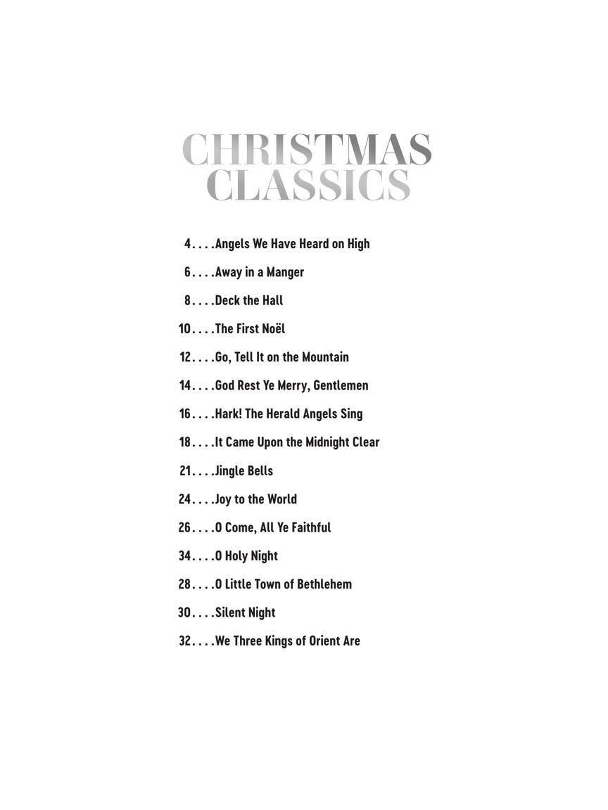 This volume includes 15 songs: Angels We Have Heard on High • Away in a Manger • Deck the Hall • The First Noel • Go, Tell It on the Mountain • God Rest Ye Merry, Gentlemen • Hark! the Herald Angels Sing • It Came upon the Midnight Clear • Jingle Bells • Joy to the World • O Come, All Ye Faithful • O Holy Night • O Little Town of Bethlehem • Silent Night • We Three Kings of Orient Are.