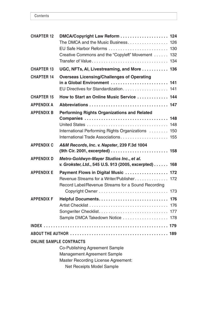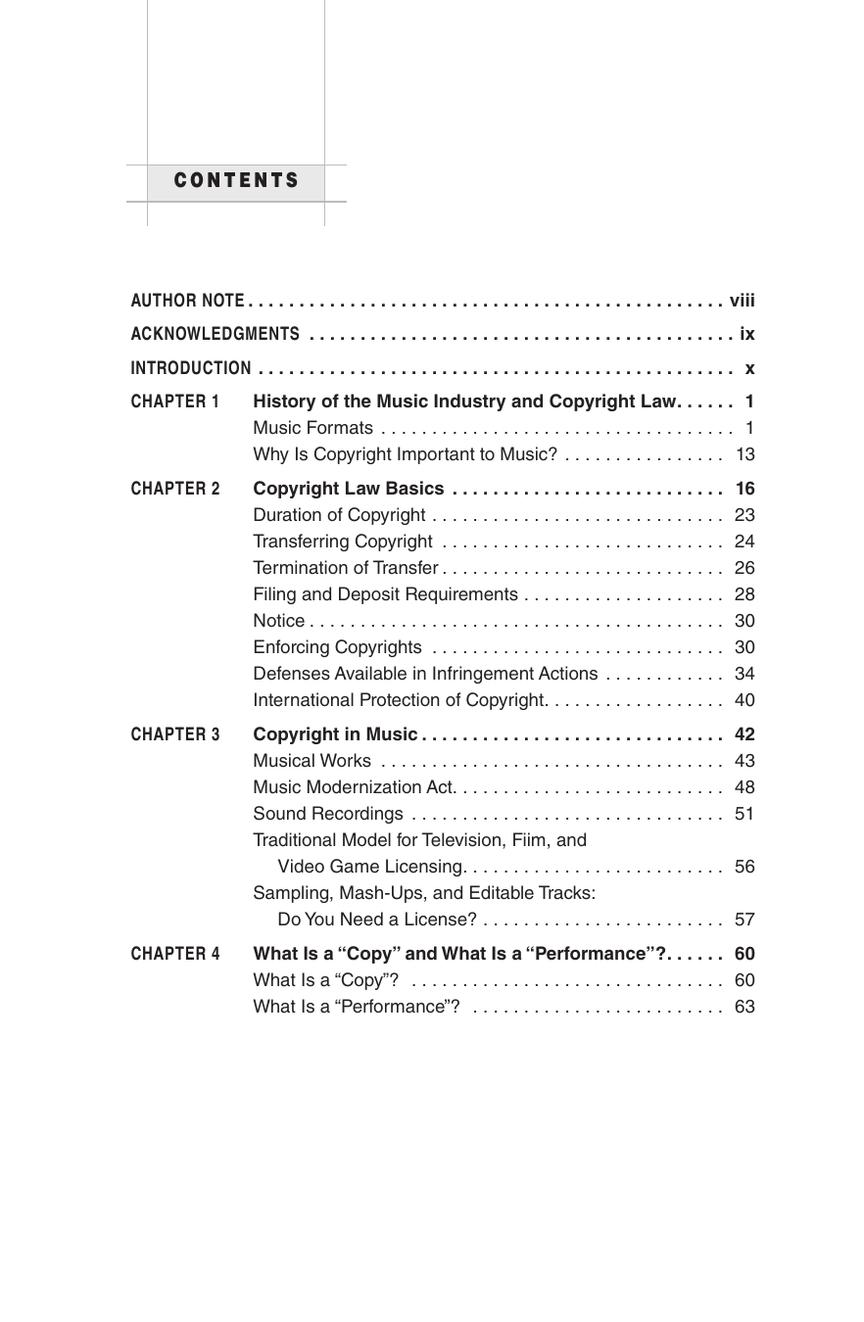 With the free-form exchange of music files and musical ideas online, understanding copyright laws has become essential to career success in the new music marketplace. This cutting-edge, plain-language guide shows you how copyright law drives the contemporary music industry. By looking at the law and its recent history, you will understand the new issues introduced by the digital age, as well as continuing issues of traditional copyright law. Whether you are an artist, lawyer, entertainment Web site administrator, record label executive, student, or other participant in the music industry, this book will help you understand how copyright law affects you, helping you use the law to your benefit.