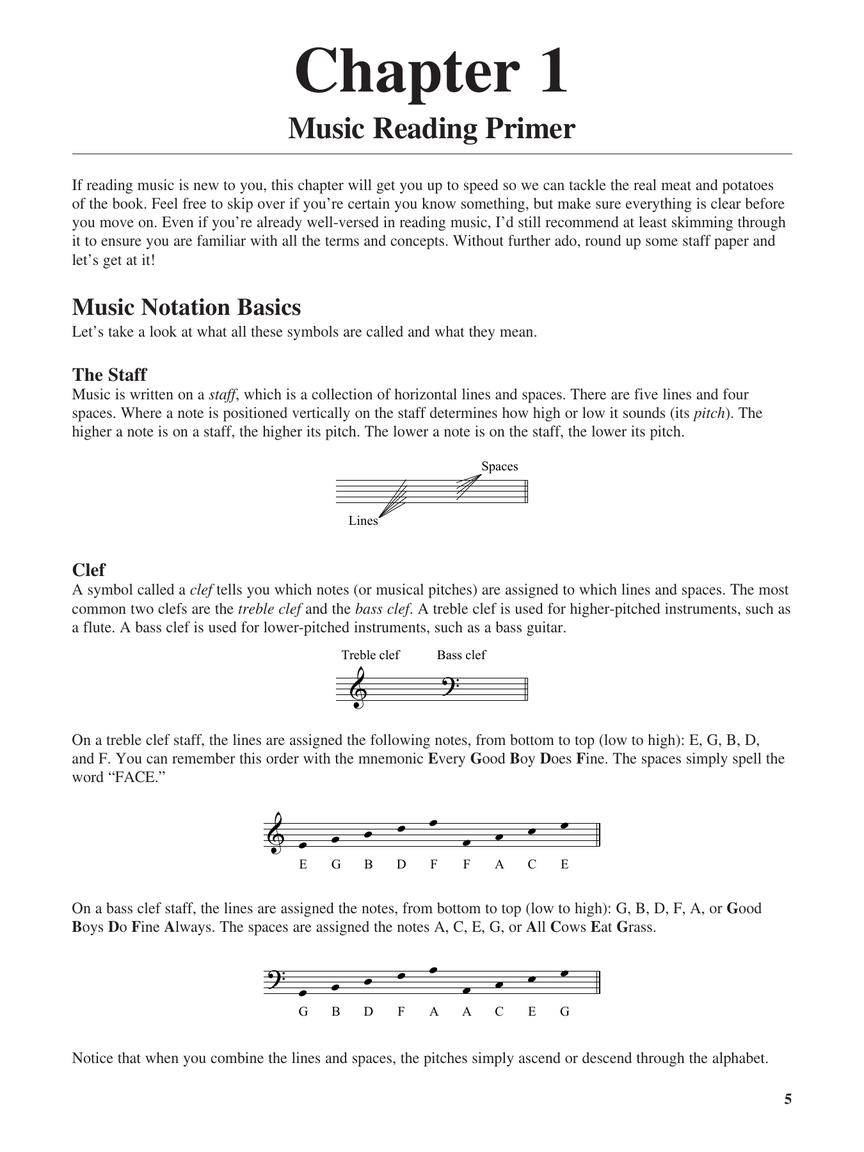 The book also includes access to recorded demonstrations. Audio is accessed online using the unique code inside the book and can be streamed or downloaded. The audio files include PLAYBACK+, a multi-functional audio player that allows you to slow down audio without changing pitch, set loop points, change keys, and pan left or right.