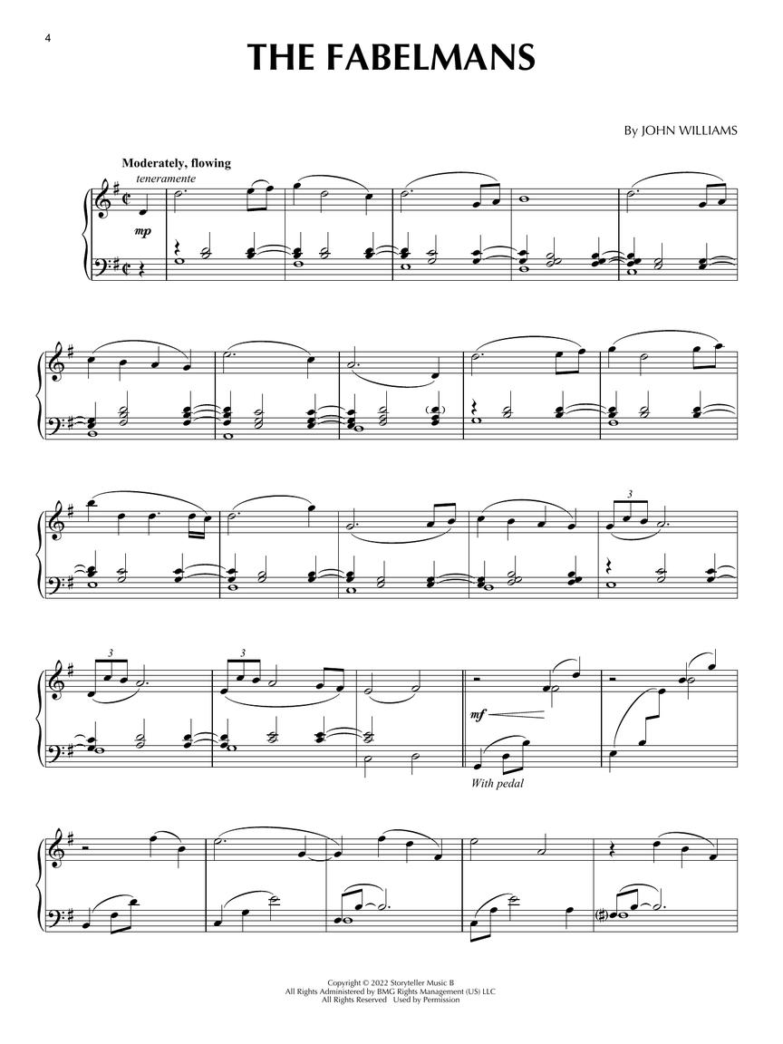 This folio features six pieces from John Williams' Oscar-nominated score for Steven Spielberg's The Fabelmans arranged for piano solo. It also includes three classical piano pieces that are featured in the film.