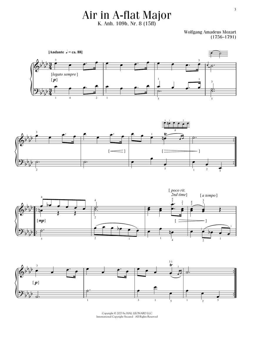 The Classical Piano Sheet Music Series includes compilations of intermediate level pieces, with an easy-to-use coil binding so the music lays flat, ensuring smooth page turns. This edition features: Adagio in C Major for Glass Harmonica, K. 356 (617a) • Air in A-flat Major, K. Anh. 109b, No. 8 (15ff) • Allegro in B-flat Major, K.3 • Allegro in F Major, K. 1c • Allegro in F Major, K. Anh. 109, No. 1 (15a) • Andante in C Major, K. 1a • Andante in E-flat Major, K. 15mm • Andantino in E-flat Major, K. 236 (588b) • Contradance in D Major, K. 534 “The Thunderstorm” • Contradance in G Major, K. 15e • Contradance in G Major, K. 269b • Eight Variations on a March from Les mariages samnites, K. 352 • Funeral March for Signor Maestro Contrapunto, K. 453a • Gavotte in F Major from Les petits riens, Anh. 10 (299b) • German Dance in C Major, K. 605, No. 3 • Larghetto in F Major, K. deest • Minuet in B-flat Major, K. 15pp • Minuet in C Major, K. 6 (I) • Minuet in D Major, K. 7 • Minuet in Major, K. 94 (73h) • Minuet in E-flat Major, K. 15qq • Minuet in F Major, K. 1d • Minuet in F Major, K. 2 • Minuet in F Major, K. 5 • Minuet in F Major, K. 6 (II) • Minuet in G Major, K. 15c • Minuet in G Major, K. 15y • Minuet in G Major, K. 1e/1f • Piece for Clavier in F Major, K. 33B • Rondo in C Major, K. 334 (320b) • Rondo in F Major, K. 15hh • Six Variations on “Mio caro Adone,” K. 180 • Sonata in C Major K. 545 “Sonata facile” • Twelve Variations on “Ah, vous dirai-je Maman,” K. 265 “Twinkle, Twinkle, Little Star”