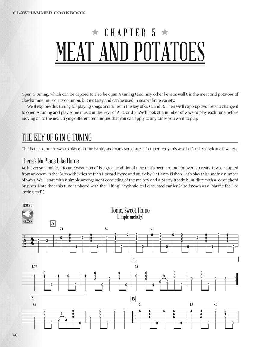 There are two ways to approach writing a cookbook – and this goes for cooking food and cooking up some great music. One way is to give you a bunch of recipes and tell you, “Here's how to make this dish, or here's how to play this tune.” Another way is to teach you how to cook. In other words, by providing you with techniques for mixing flavors, the knowledge of when, where, and how to apply heat, and ideas on how to add your own touches, you can make the dish – or the tune – your own. This book takes the second path. The goal of this book isn't to tell you how to play tunes or how to play like anyone else. It's to teach you ways to approach, arrange, and personalize any tune – to develop your own unique style. To that end, we'll take in a healthy serving of old-time music and also expand the clawhammer palate to taste a few other musical styles. Includes audio track demos of all the songs and examples to aid in the learning process.