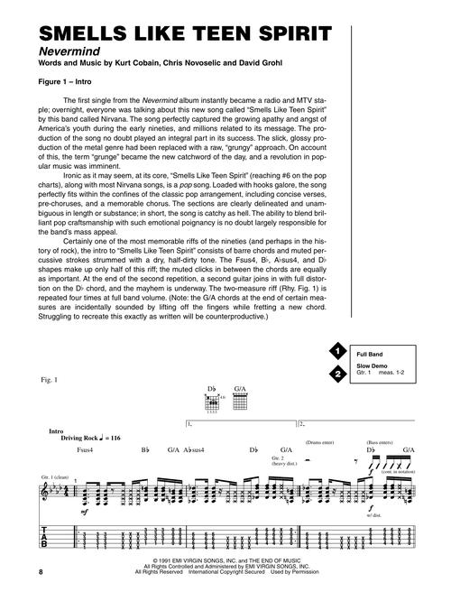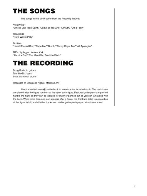 Aprenda os licks e riffs do Nirvana. Como heróis de uma nova geração musical, a influência do Nirvana é inestimável. Este livro/pacote de áudio online permite que você entre na música do deus do grunge Kurt Cobain, ensinando seus riffs e licks que definiram a música alternativa. Inclui uma introdução, notas detalhadas sobre as guitarras, amplificadores e efeitos de Cobain, uma discografia e estes 12 clássicos do Nirvana: About a Girl • All Apologies • Come as You Are • Dumb • Heart Shaped Box • Lithium • The Man Who Sold the World • On a Plain • Penny Royal Tea • (New Wave) Polly • Rape Me • Smells like Teen Spirit.