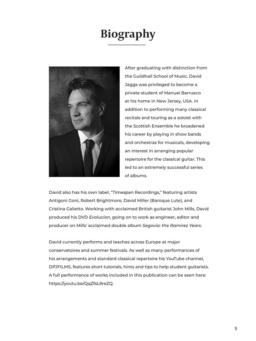 Guitar virtuoso David Jaggs' YouTube lessons and performances have garnered millions of views. Due to that popular demand, we bring you this collection featuring David's arrangements along with his performance suggestions AND a recording of David playing each piece! This collection features 20 beautiful and memorable movie themes from a variety of films (Star Wars, Forrest Gump, The Pink Panther, The Godfather, Pirates of the Caribbean, and more) composed by maestros John Williams, Ennio Morricone, Alan Silvestri, Nino Rota, Maurice Jarre, and Henry Mancini, just to name a few. Each piece is masterfully arranged in standard notation and tab.