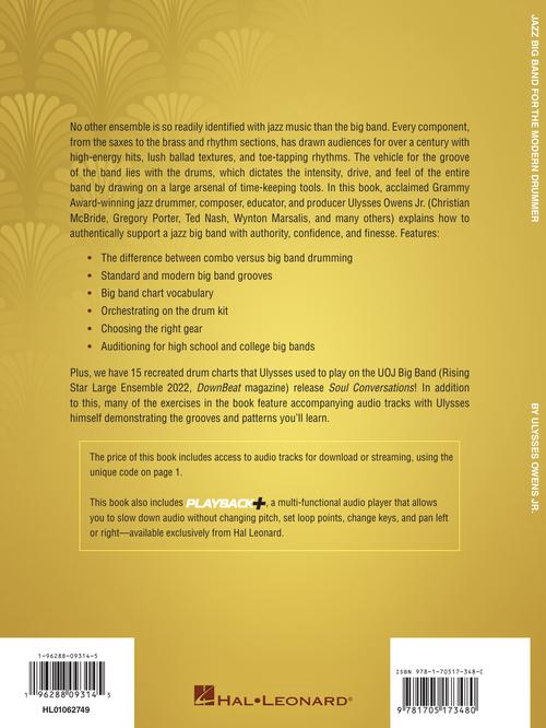 No other ensemble is so readily identified with jazz music than the big band. Every component, from the saxes to the brass and rhythm sections, has drawn audiences for over a century with high-energy hits, lush ballad textures, and toe-tapping rhythms. The vehicle for the groove of the band lies with the drums, which dictates the intensity, drive, and feel of the entire band by drawing on a large arsenal of time-keeping tools. In this book, acclaimed Grammy Award-winning jazz drummer, composer, educator, and producer Ulysses Owens Jr. (Christian McBride, Gregory Porter, Ted Nash, Wynton Marsalis, and many others) explains how to authentically support a jazz big band with authority, confidence, and finesse. Features: