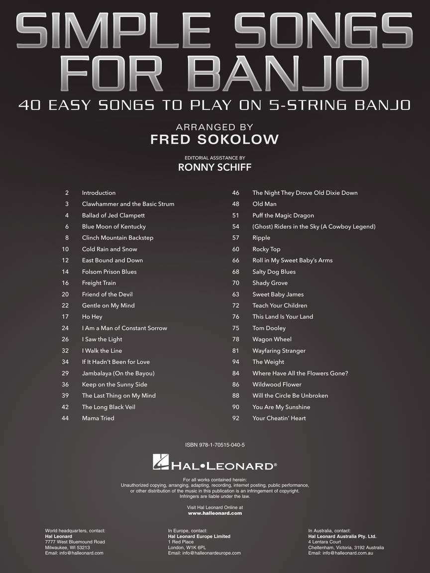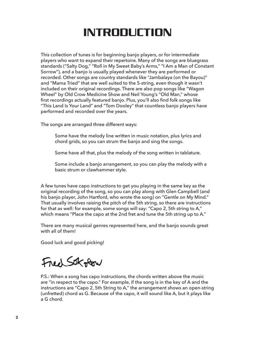 This book provides beginning banjo players with easy streamlined arrangements of 40 popular songs. Learn the basics of clawhammer style, strum and sing along, or pick the melody lines. Arrangements are a combo of tab, standard notation, chord grids and lyrics selected and prepared by renowned banjo guru, Fred Sokolow.
