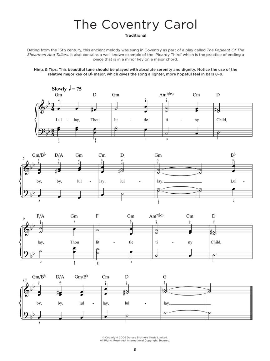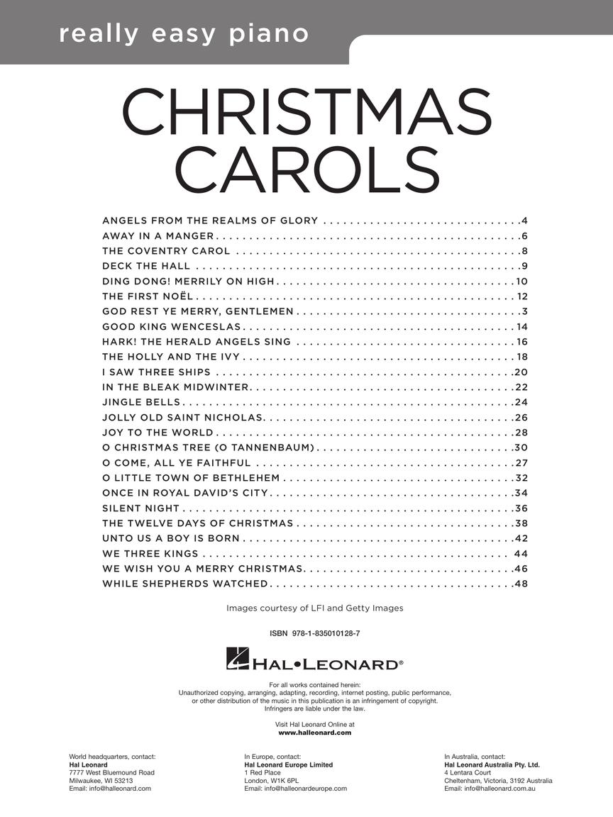 25 well-known Christmas solos in easy-to-play arrangements for piano, presented with background notes and performance tips for every song and lyrics. Songs include: Away in a Manger • The Coventry Carol • God Rest Ye Merry, Gentlemen • I Saw Three Ships • Jingle Bells • Joy to the World • O Come, All Ye Faithful • Silent Night • We Three Kings • We Wish You a Merry Christmas • and more.