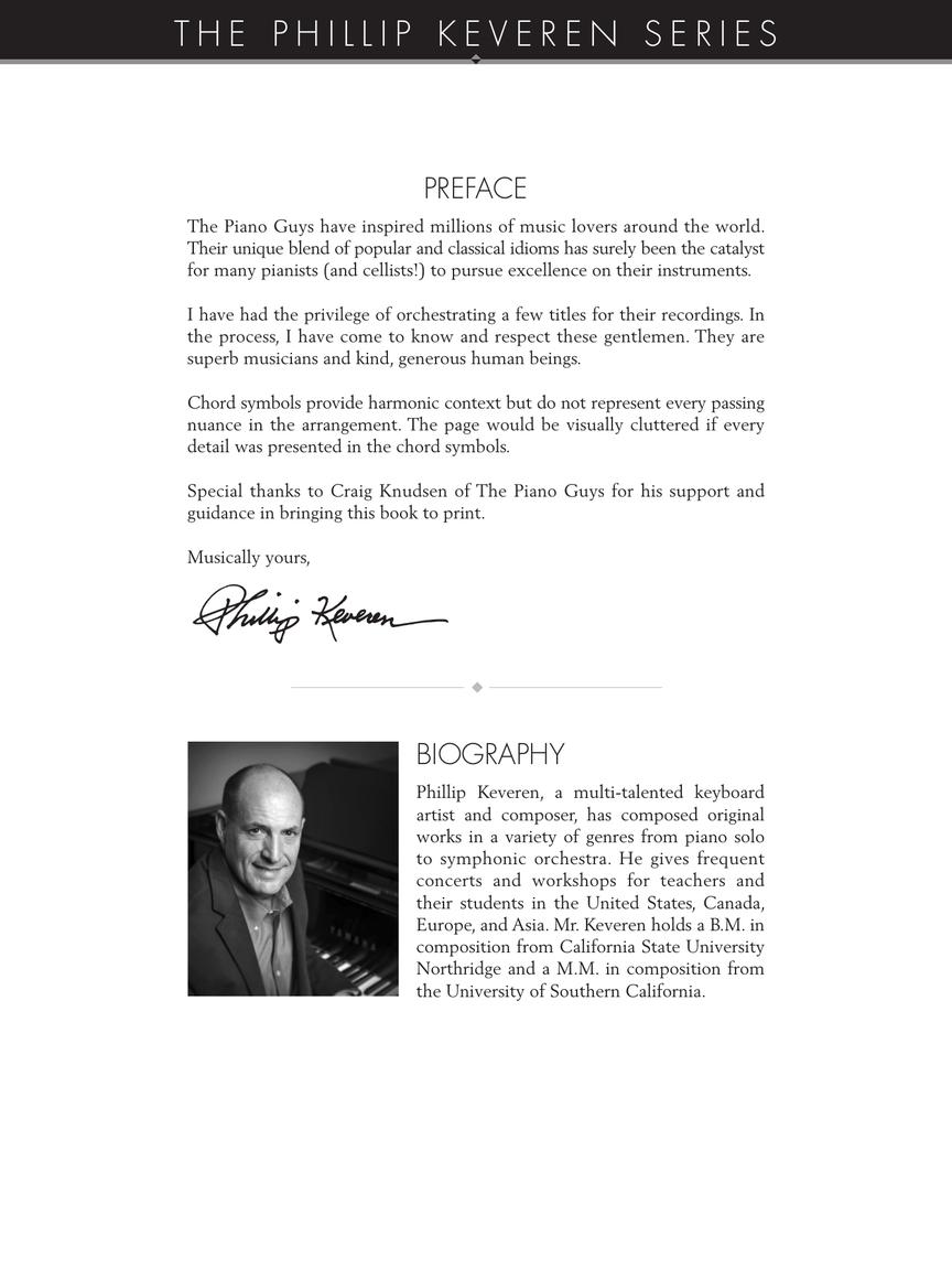 15 of The Piano Guys' best-loved songs arranged so YOU can play them! Phillip Keveren has done a superb job of adapting these arrangements for easy piano.