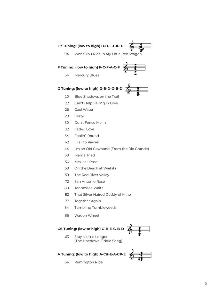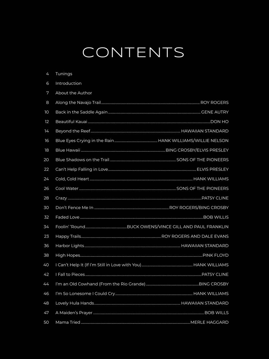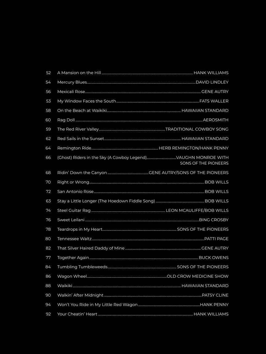 Songs include: Back in the Saddle Again • Blue Eyes Crying in the Rain • Can't Help Falling in Love • Crazy • Faded Love • Happy Trails • I'm So Lonesome I Could Cry • Mama Tried • (Ghost) Riders in the Sky (A Cowboy Legend) • Together Again • Waikiki • Walkin' After Midnight • Won't You Ride in My Little Red Wagon • Your Cheatin' Heart • and more.