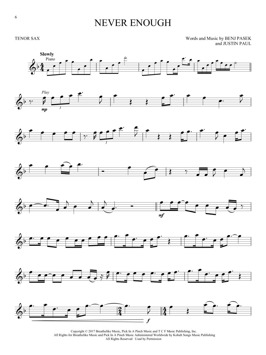 THE GREATEST SHOWMAN - TENOR SAX