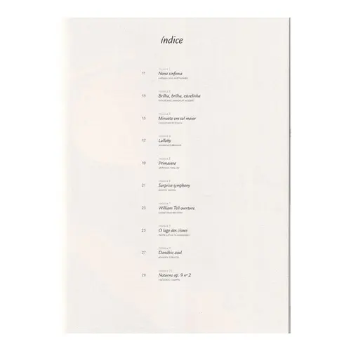Traz repertório reconhecido, este volume 1 , que conta com arranjos facilitados para o piano de obras de Beethoven, Mozart, Vivaldi, Brahms, Haydn, Rossini, Tchaikovsky, entre outros!