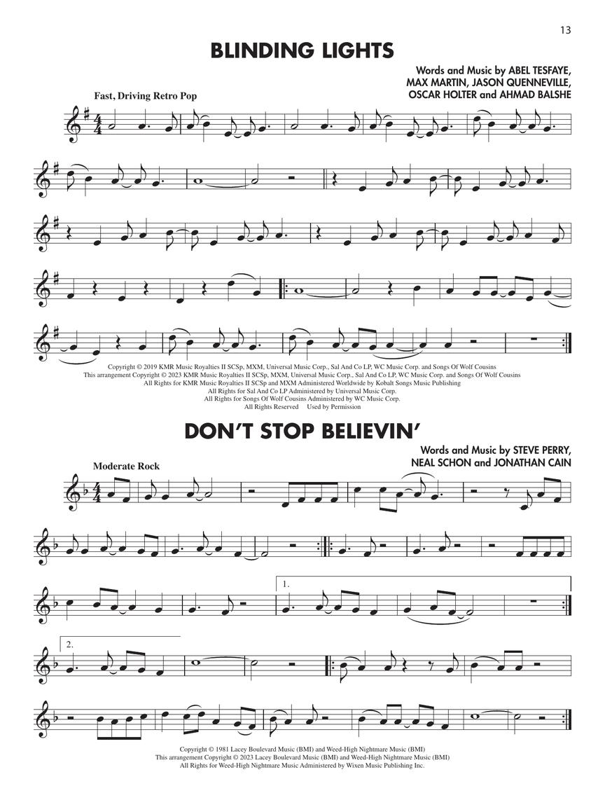 30 popular melodies at an easy level in solo books for all the instruments in the Essential Elements Band Method. Perfect motivational music for students to play and practice featuring songs by Billie Eilish, Queen, Shawn Mendes, Taylor Swift, Star Wars, The Avengers, and more! Titles include: Believer • Blinding Lights • Don't Stop Believin' • Dynamite • Hallelujah • The Imperial March (Darth Vader's Theme) • Let It Go • Señorita • Seven Nation Army • Sucker • This Is Me • We Are the Champions • Wildest Dreams • You Will Be Found • and more.