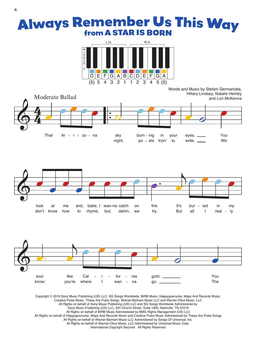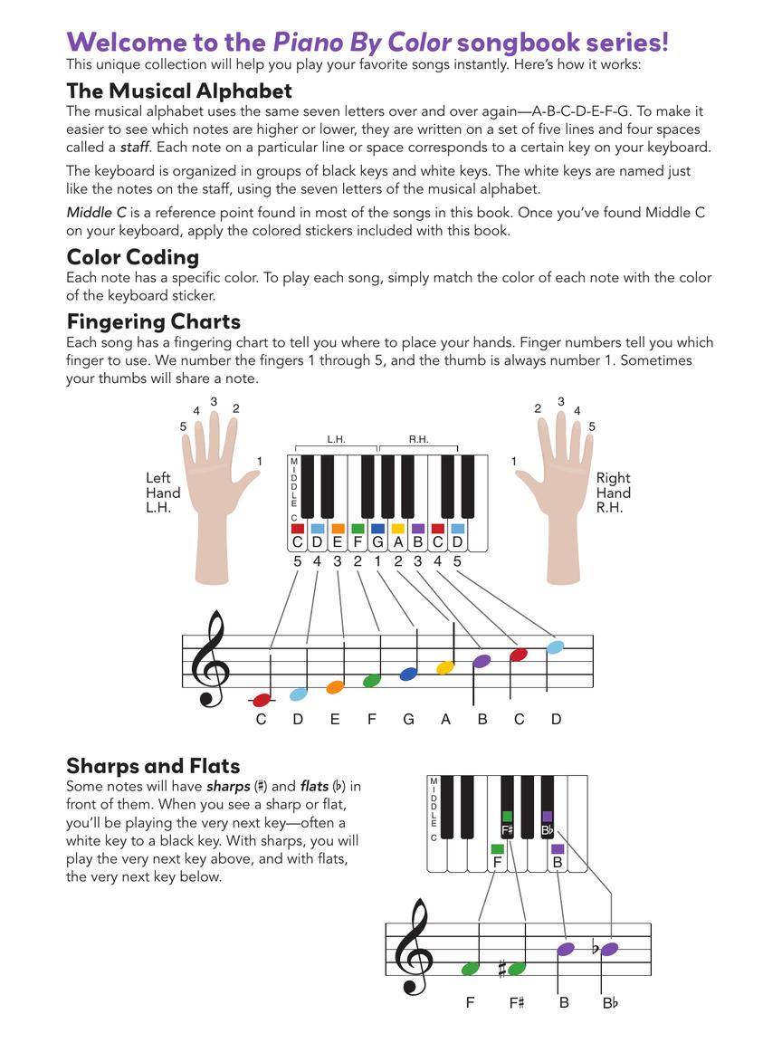 Perfect for beginners, the Piano-by-Color songbook series will have you playing your favorite songs from Taylor Swift, Billie Eilish, Imagine Dragons and many others instantly. Simply apply the color sitckers to your keyboard, find your hand position using the chart at the beginning of each song, and match the color of each note to the color of the keyboard sticker. This collection of pop hits will have you dazzling your friends and family in no time!