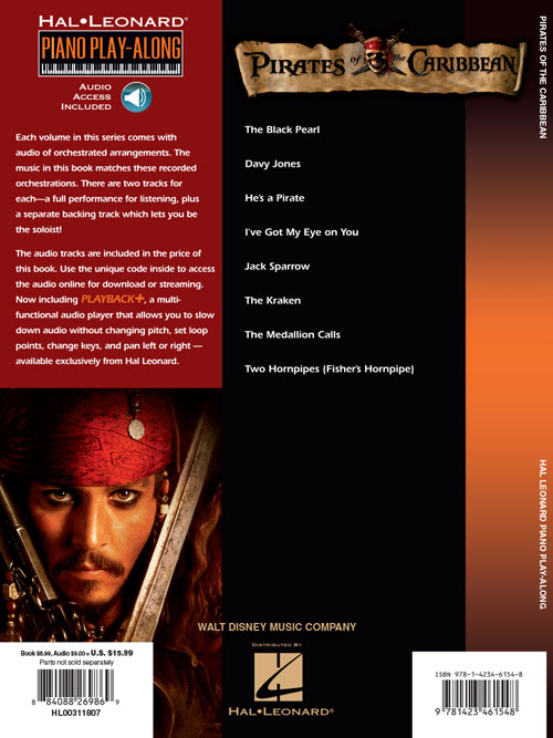 Você agora pode tocar suas músicas favoritas com o Piano Play-Along series! Com este livro, pianistas e tecladistas poderão praticar e tocar com acompanhamento de nível profissional. Contem 8 músicas transcritas para teclado, com as letras e cifras para guitarra e violão. O CD traz duas faixas para cada música: uma com a versão completa com a melodia e outra sem a melodia para que o tecladista possa tocá-la. Incluindo: The Black Pearl • Davy Jones • He's a Pirate • I've Got My Eye on You • Jack Sparrow • The Kraken • The Medallion Calls • Two Hornpipes (Fisher's Hornpipe).
