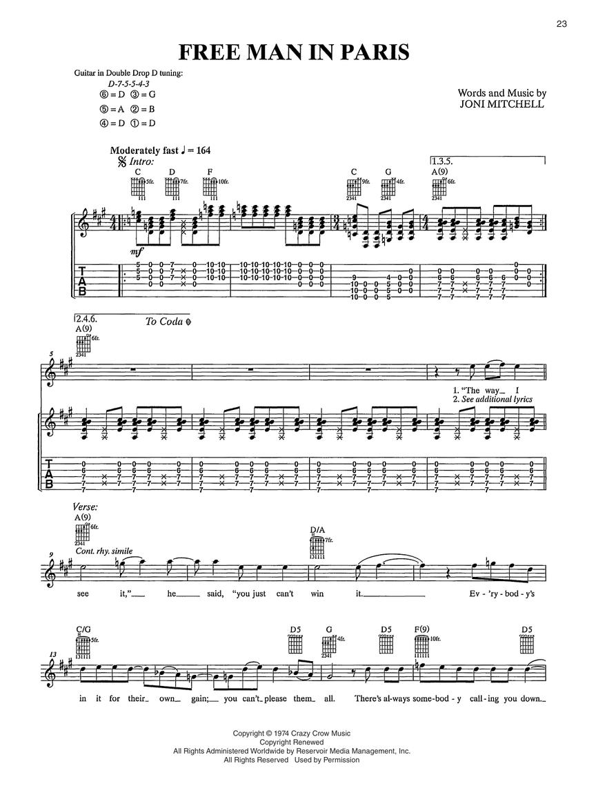 Dive deeper with a helpful guide to Joni's groundbreaking approach to guitar tunings, revealing the unique and innovative techniques that defined her compositions. In the early '70s, Joni traveled to Europe and started writing and recording songs on mountain dulcimer. This collection contains her actual dulcimer tab for those songs, along with the supporting guitar parts. This anthology is the key to mastering her revolutionary style and connecting with her timeless music!