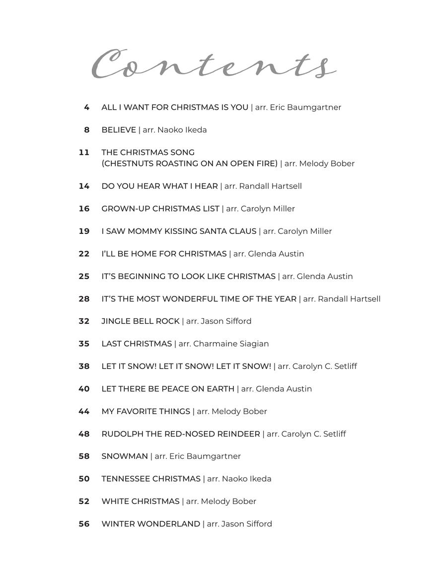 This exciting Christmas collection features 19 distinctive piano solos in a variety of styles. Arrangers include Glenda Austin, Eric Baumgartner, Melody Bober, Randall Hartsell, Naoko Ikeda, Carolyn Miller, Carolyn Setliff, Charmaine Siagian, and Jason Sifford! Suitable for yearend recitals, holiday parties, and anything in between. Titles include: Believe • Do You Hear What I Hear • I'll Be Home for Christmas • Jingle Bell Rock • My Favorite Things • Let There Be Peace on Earth • It's the Most Wonderful Time of the Year • Last Christmas • Rudolph the Red-Nosed Reindeer • Snowman • White Christmas • and more.