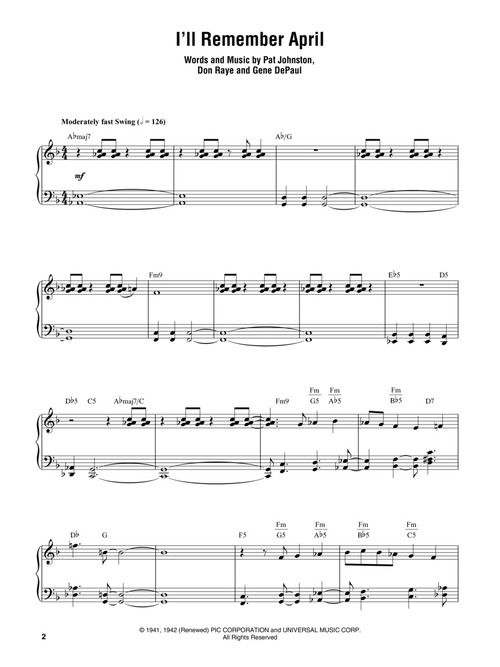 Transcrições para piano. April in Paris • Autumn Leaves • Erroll's Theme • I'll Remember April • It's All Right with Me • Mambo Carmel • Red Top • Sultry Serenade (How Could You Do a Thing like That to Me) • Teach Me Tonight • They Can't Take That Away from Me • Where or When.