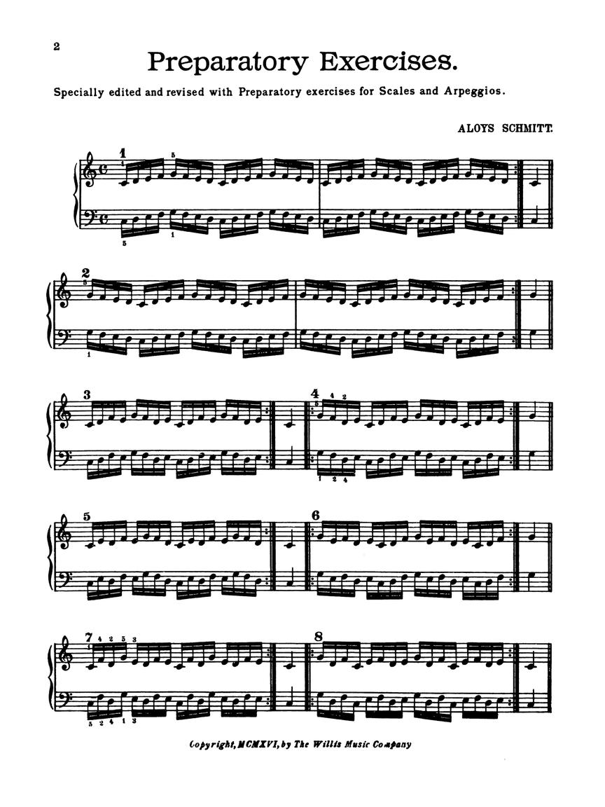 The 213 Schmitt preparatory exercises have been in use by pianists, students, and teachers since their first publication in 1820. This collection also includes scales and chords in all major and minor keys as prepared by L. Kohler.
