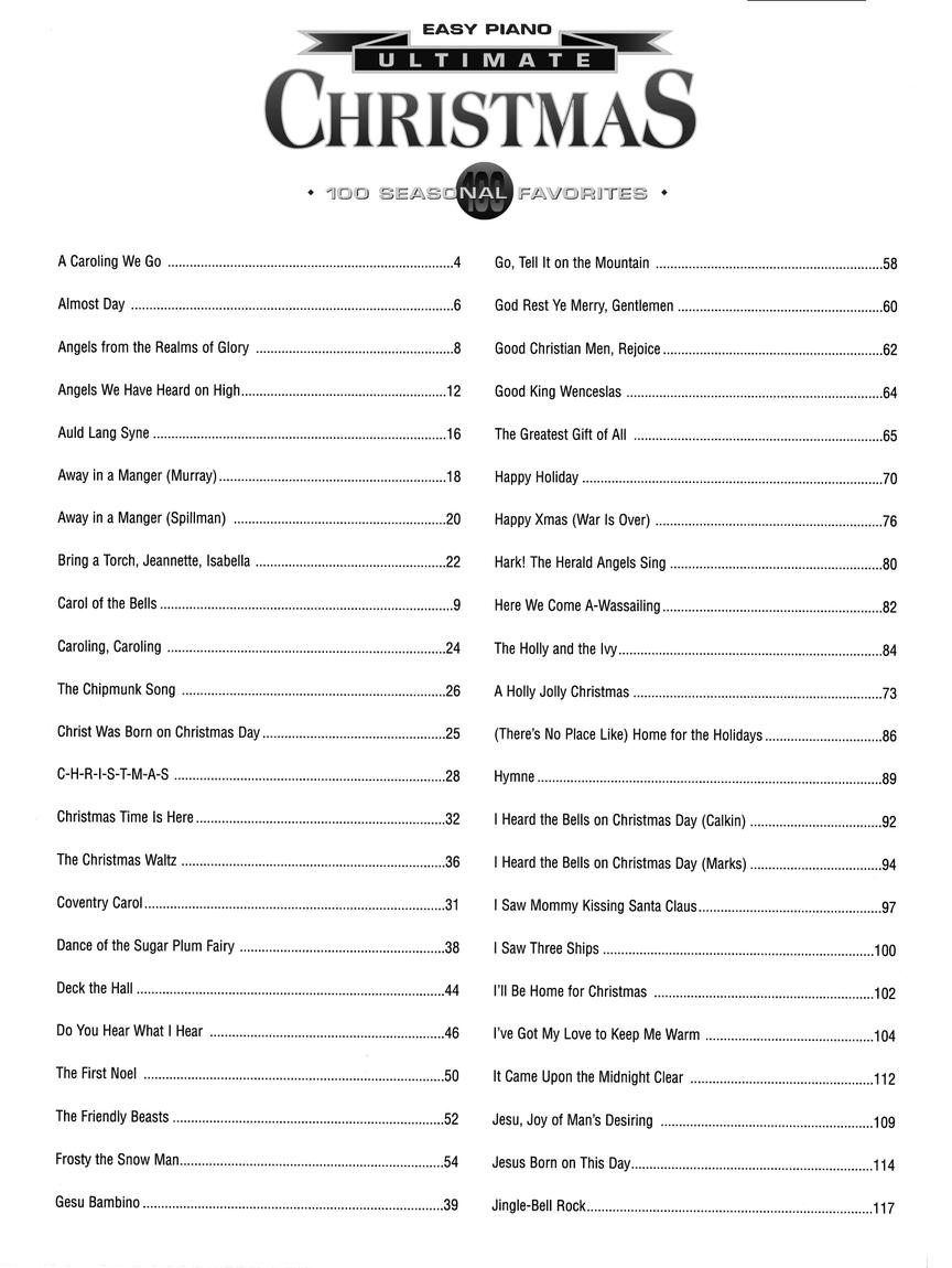 The ultimate collection of Christmas classics just got better with this third edition that includes even more of your favorites. 100 songs, including: Auld Lang Syne • Bring a Torch, Jeanette, Isabella • Carol of the Bells • The Chipmunk Song • Christmas Time Is Here • Do You Hear What I Hear • The First Noel • Gesu Bambino • Happy Holiday • Happy Xmas (War Is Over) • Hymne • I've Got My Love to Keep Me Warm • Jesu, Joy of Man's Desiring • Jingle-Bell Rock • A Marshmallow World • Merry Christmas, Darling • My Favorite Things • The Night Before Christmas Song • Rudolph the Red-Nosed Reindeer • Silver and Gold • Silver Bells • The Star Carol • Suzy Snowflake • What Child Is This? • Wonderful Christmastime • The Wonderful World of Christmas • and more.