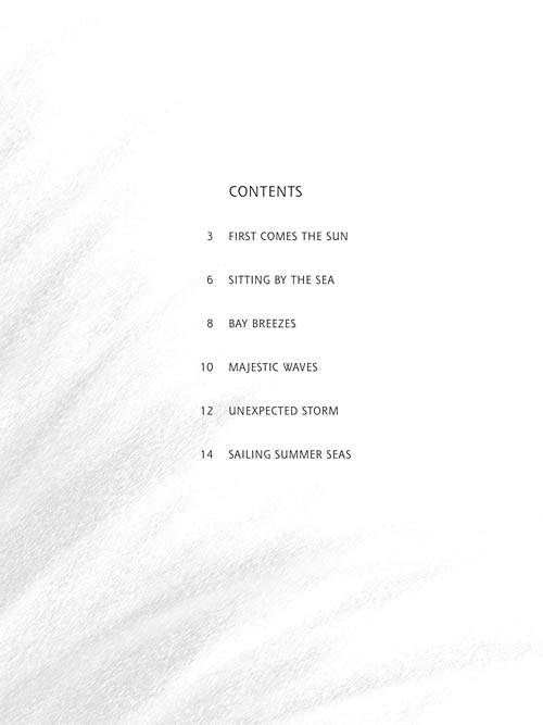Six beautiful original piano solos inspired by the sea: First Comes the Sun • Sitting by the Sea • Bay Breezes • Majestic Waves • Unexpected Storm • Sailing Summer Seas.