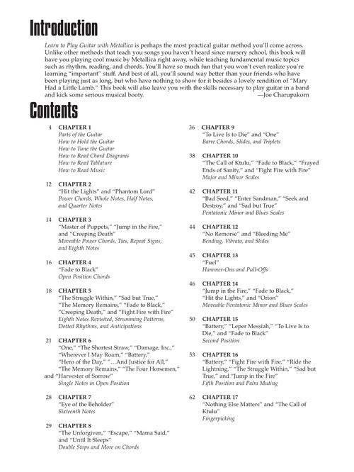 Dicas e instruções de como tocar mais de 30 músicas do Metallica, incluindo: ...And Justice for All · Battery · Damage, Inc. · Enter Sandman · Fade to Black · Fuel · Hero of the Day · Master of Puppets · Nothing Else Matters · One · Ride the Lightning · The Struggle Within · The Unforgiven · e outras!!!!