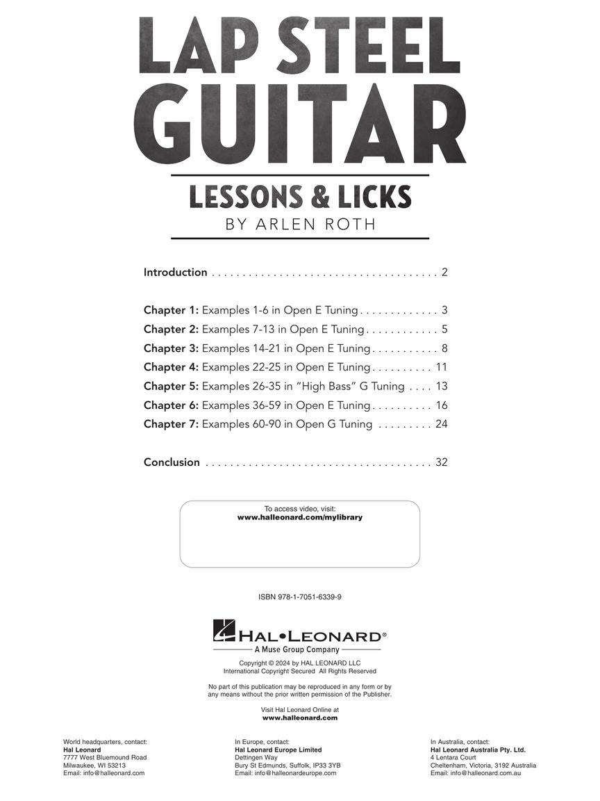 Unlock the unique sound of the Hawaiian lap steel guitar with Lap Steel Guitar Lessons & Licks. This book/video combo from slide guitar master Arlen Roth dives into essential techniques and styles for this increasingly popular instrument, from blues slide and harmonic chimes to Hawaiian melodies and jazz-inspired runs. Perfect for beginners and seasoned players alike, it covers tunings, chord work, and more to help you master this versatile instrument. Topics include: