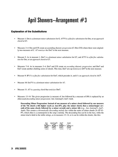 Este livro, indicado a guitarristas iniciantes e intermediários, é divido em quatro estágios. São apresentados quatro standards de jazz com arranjos de vários níveis de dificuldade sendo que para os iniciantes são utilizados acordes na primeira posição, para os guitarristas de nível intermediário são usados acordes mais complexos e para os mais avançados são apresentados substituições de acordes e rearmonizações.