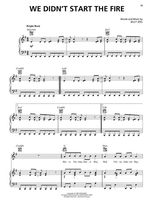 Transcrições para piano/voz e acordes para violão; incluindo: We Didn't Start the Fire • And So It Goes • The Downeaster “Alexa” • I Go to Extremes • Leningrad • Shameless • State of Grace • Storm Front • That's Not Her Style • When in Rome.