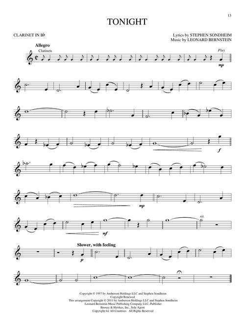 Arranjos para clarinete. Acompanha áudio online para tocar junto; incluindo: America • Cool • I Feel Pretty • I Have a Love • Jet Song • Maria • One Hand, One Heart • Something's Coming • Somewhere • Tonight.