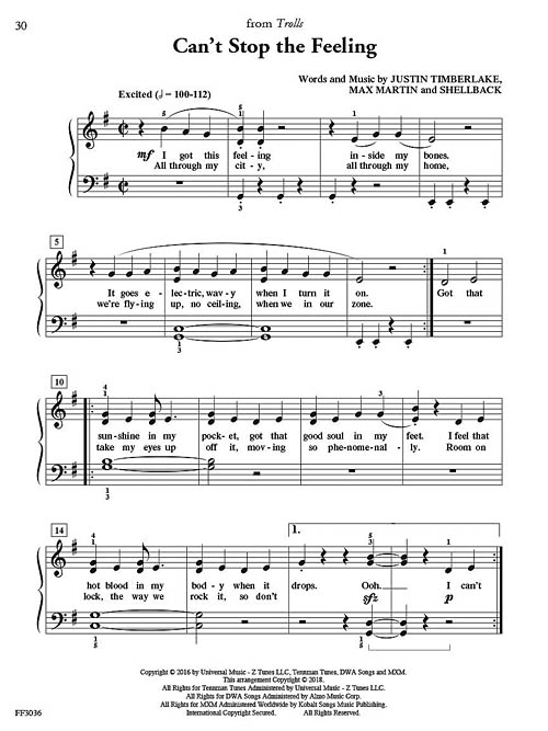 This striking collection of 10 popular songs is arranged to motivate the Level 3 piano student. Enjoy blockbusters, chart-toppers, and award-winners as performed by stars such as Ed Sheeran, Lady Gaga, Justin Timberlake and more. Songs include: Can't Stop the Feeling (Justin Timberlake) • Feel It Still (Portugal. The Man) • Fight Song (Rachel Platten) • Lost Boy (Ruth B) • Love Yourself (Justin Bieber) • Million Reasons (Lady Gaga) • Photograph (Ed Sheeran) • Radioactive (Imagine Dragons) • Roar (Katy Perry) • A Thousand Years (Christina Perri) • Treat You Better (Shawn Mendes).