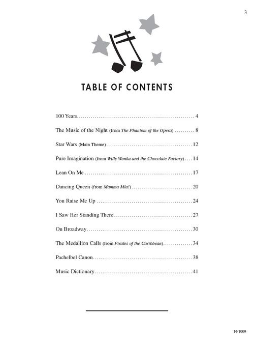 This new collection features 11 hits that students will love to learn, including: Dancing Queen • I Saw Her Standing There • Lean on Me • 100 Years • Pachelbel Canon • Pure Imagination • Star Wars (Main Theme) • You Raise Me Up • and more.
