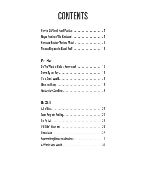 Beginners will love being able to play songs right away! Piano for Kids Songbook is a supplementary companion to the Piano for Kids Method Book as the songs begin with pre-staff notation (note names inside the note heads) and progress in like manner to reading notes on the staff. The pop arrangements reinforce concepts learned in the method book. From classic songs like “Do Re Mi” and “Linus and Lucy” to contemporary hits like “All of Me” or “Can't Stop the Feeling” kids will enjoy playing songs that everyone knows (even Mom and Dad). Includes audio tracks online for download or streaming.