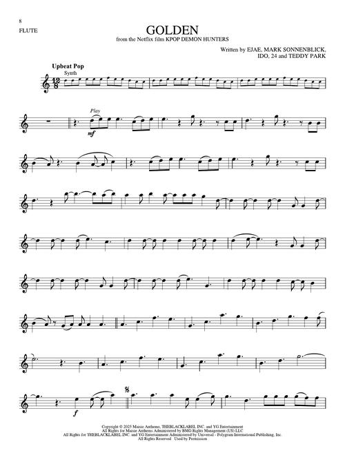 Play along with standout songs from top new films, including Kpop Demon Hunters, Minecraft, Wicked, Moana 2, Snow White (2025), Joker: Folie a Deux, and more. This collection features 12 memorable tracks arranged for solo flute that capture the style and energy of the movies themselves. Featured titles include “Defying Gravity,” “Popular,” “Die with a Smile,” “Golden,” “I Feel Alive,” “Beyond,” and more. Perfect for players of all levels who want to enjoy their favorite hits at home, in lessons, or on stage!