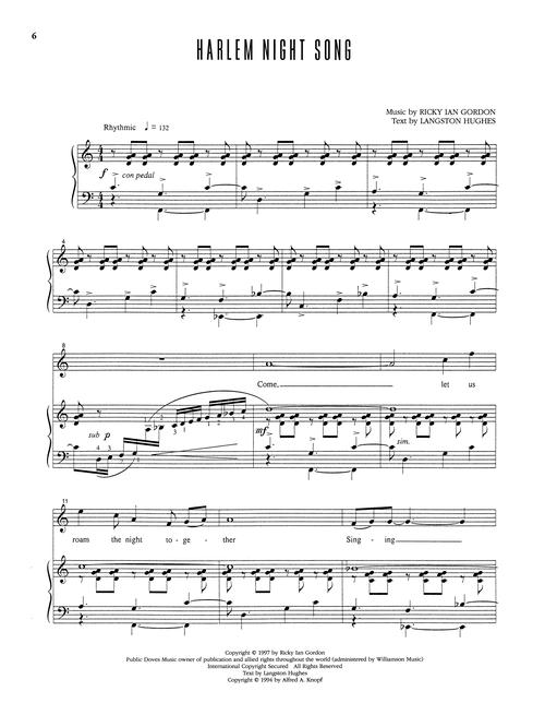 Adaptações de 17 poemas de Langston Hughes; conteúdo: Angel Wings • Daybreak in Alabama • Delinquent • Demand • Dream • Dream Variations • Drum • Harlem Night Song • In Time of Silver Rain • Late Last Night • Litany Luck • Night: Four Songs • Port Town • Song for a Dark Girl • Stars • When Sue Wears Red.