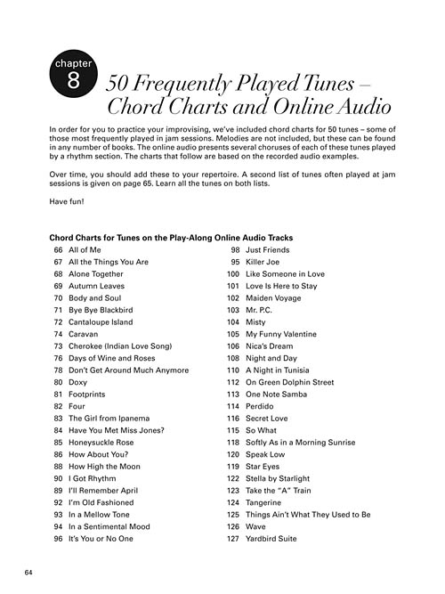 Jazz Session Trainer is the ideal resource for those players who want to hone their improvising skills, improve their chops, and feel at home in a jam session. In addition to a generous dose of scales, exercises, and licks, the book includes a chapter on jam session etiquette, a practice planner, and chord charts – plus accompanying online audio – for 50 frequently played tunes.