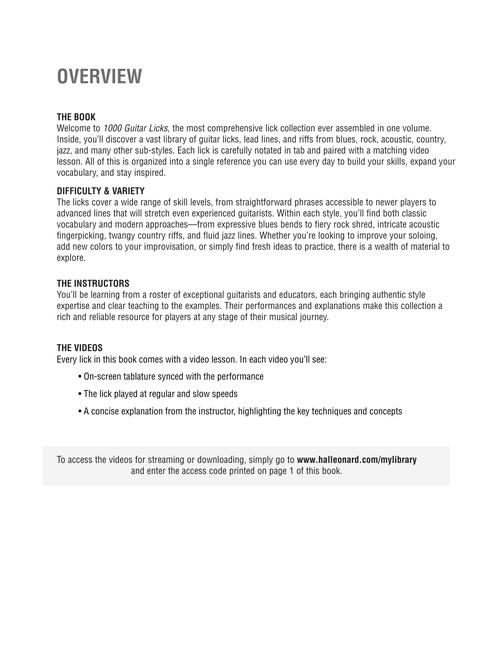• 1000 notated guitar licks covering blues, rock, acoustic, country, and jazz